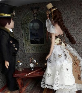 He knows I’ve always loved the stars and planets, so he made us a clockwork orrery, encased in a glass dome. He also knew that my dear husband (how strange it feels to use that word!) is fascinated by the idea of remote communication, so his second gift to us was a telephonic device – also clockwork, naturally – that will enable us to speak to him from anywhere in the world. My Beloved insists that this is just the start and one day everyone will have one of these devices and be able to talk together from all corners of the earth.